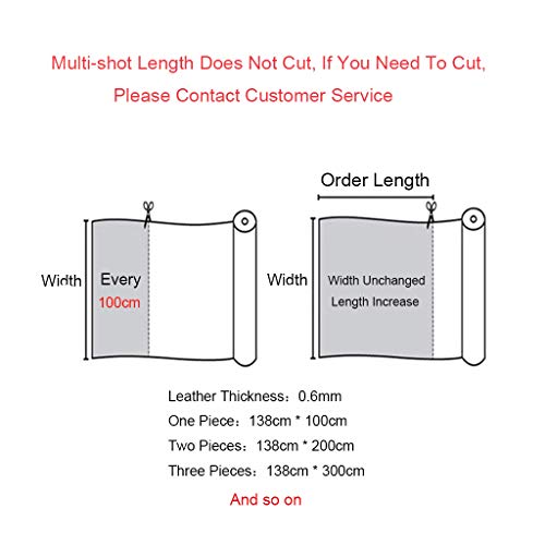 Ancho aproximado de polipiel (138cm). A partir de 138 cm (ancho fijo) x 100 cm (largo) ; 0,6 mm de grosor y se venden por metros, todos los pedidos se enviarán en una pieza continua.