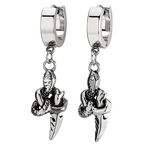2 Pendientes del Aro con Colgantes Serpiente, Pendientes para Hombres Mujer, Acero Inoxidable