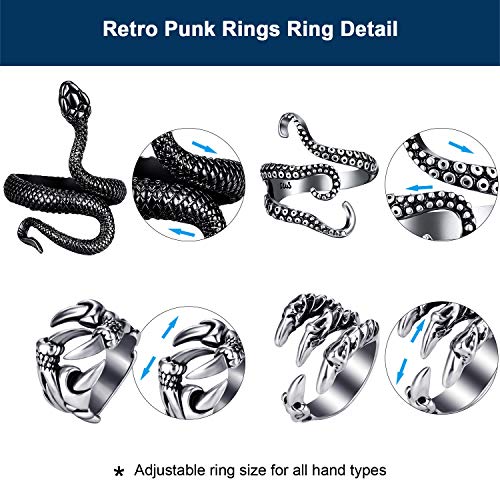 Aplicación: los 4 tipos diferentes de anillos punk vintage ajustables se pueden usar en la mayoría de las ocasiones, como fiestas temáticas, uso diario, decoración de su estilo cotidiano y también puede presentarlos como regalos para su familia y amigos