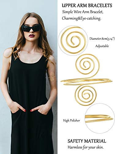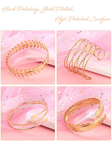 Material del producto: esta pulsera de brazo superior está hecha de aleación, es inofensiva para su piel, lisa y brillante, cómoda de usar, pulido a mano, chapado en oro, superficie altamente pulida, puede usarla durante mucho tiempo