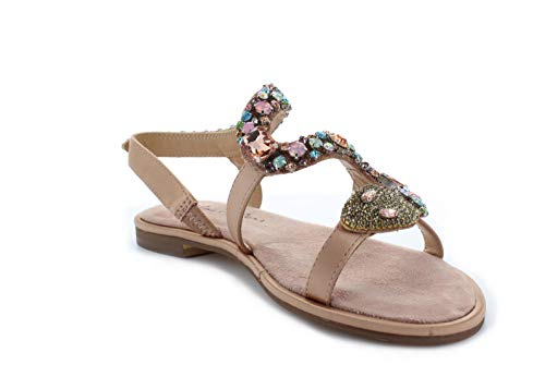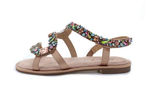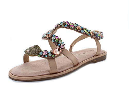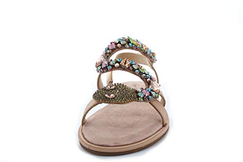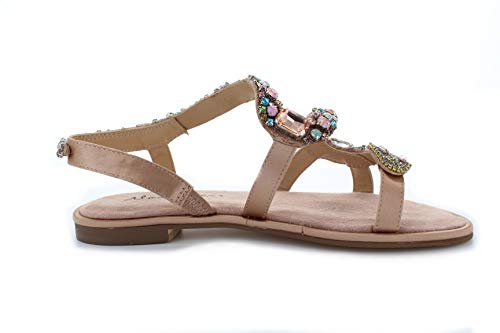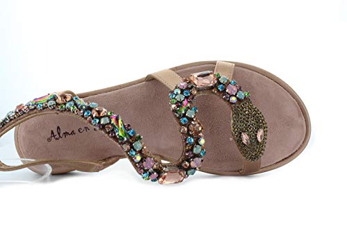 Alma en Pena Sandalias de mujer con brillantes de imitación y cabeza de serpiente V20932 de ante satén rosa (Old Rose)