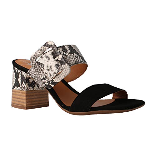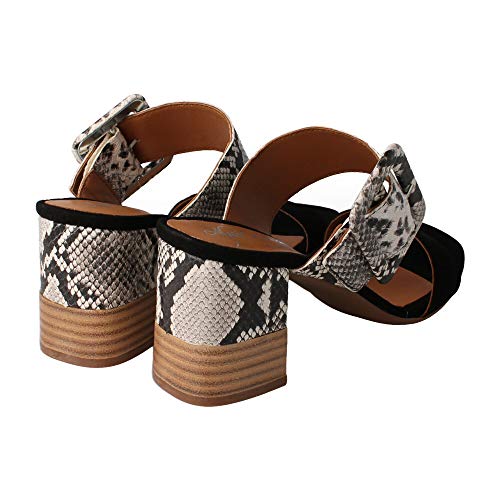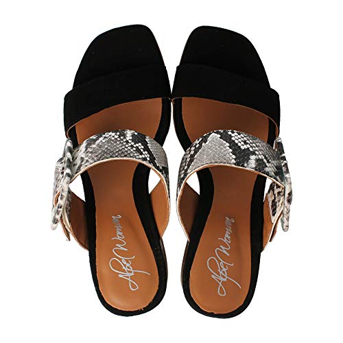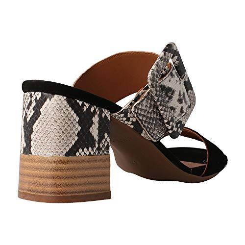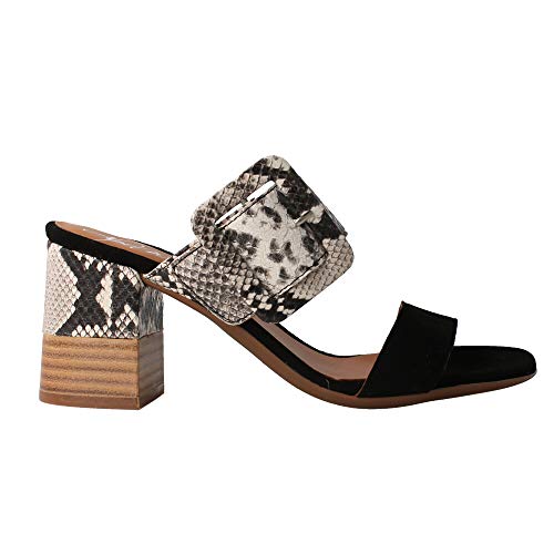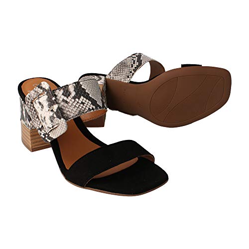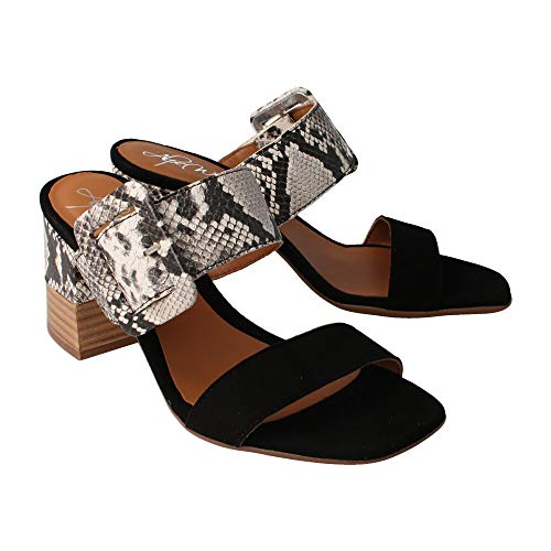 SANDALIA DE DOBLE TIRAS EN ANTE NEGRO CON HEBILLA EN GRABADO SERPIENTE NEGRO DE LA MARCA ALPE