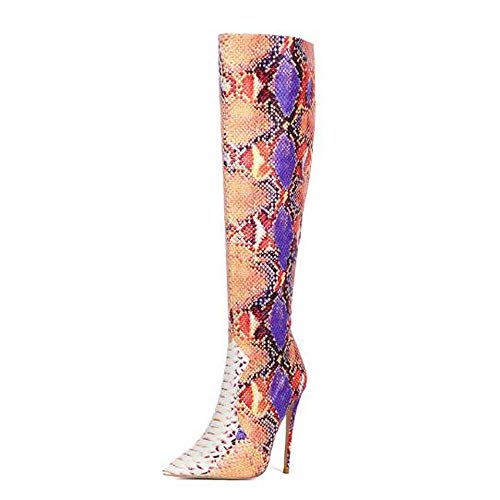 Angelay-Tian Cargadores for las mujeres rodilla alta, de piel de serpiente Patrón botas altas de cuero, botas hasta la…