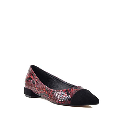 Este diseño de bailarina destaca por su animal print en dos tonalidades. Además, su puntera está reforzada y es de color negro.