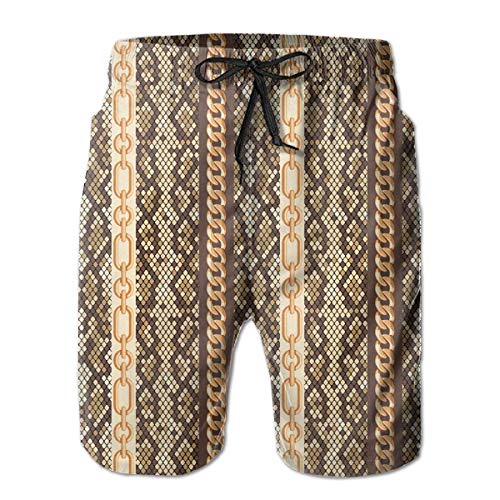 Bañador para Hombres Cadenas Doradas Piel de Serpiente Patrón Animal Surf Playa Pantalones Cortos de Playa Trajes de…