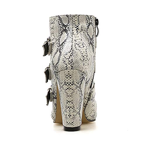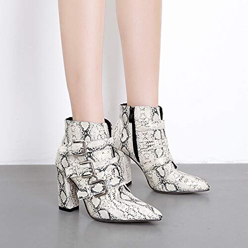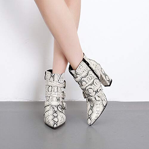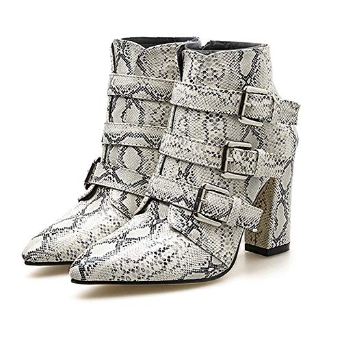 BaZhaHei Botines de Mujer PatróN de Piel de Serpiente con Cremallera en El Dedo del Pie Hebilla CinturóN Grueso Botines…