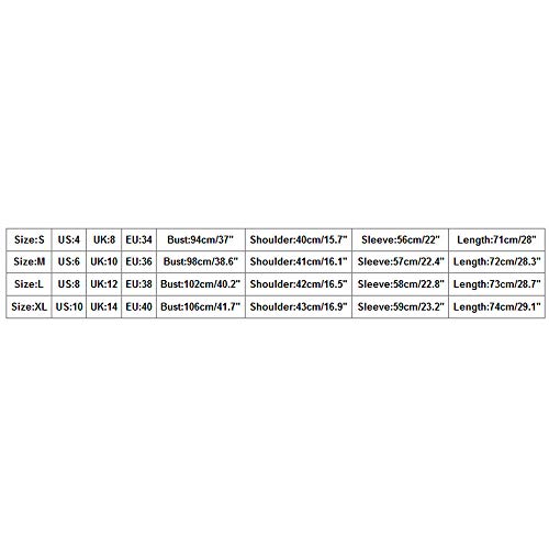 Tamaño: XL EE. UU .: 10 Reino Unido: 14 EU: 40 Busto: 106cm / 41.7 «Hombro: 43cm / 16.9» Manga: 59cm / 23.2 «Longitud: 74cm / 29.1»