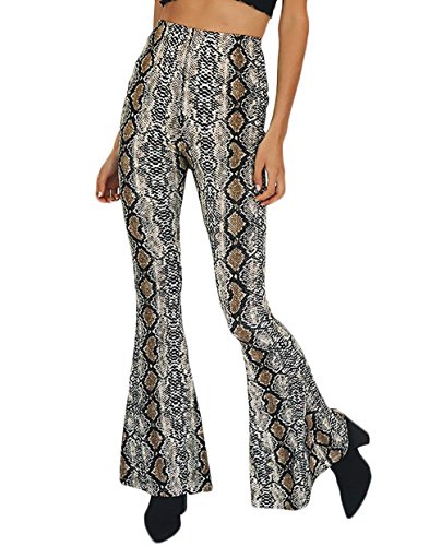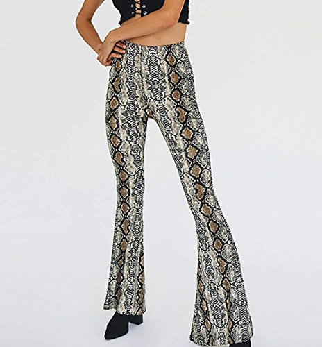 Mujer Pantalones Otoño Largos Elegantes Cintura Alta Patrón De Serpientes Golpear Los Pantalones Moda Casuales Pantalones Acampanados Skinny Especial Estilo