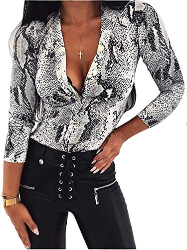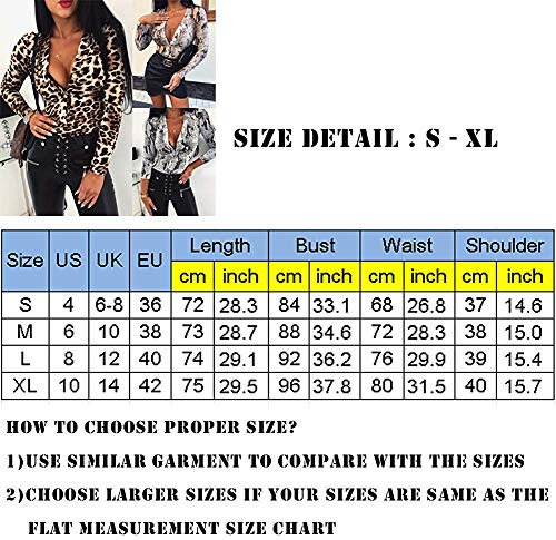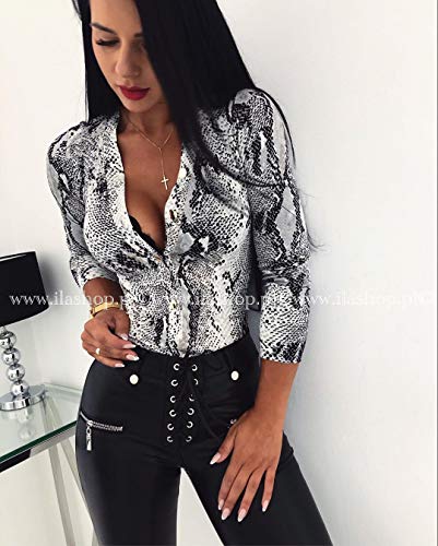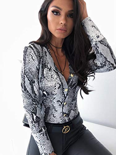 ღDiseño único: Body de mujer de manga larga, cuello en V profundo, estampado de leopardo / serpiente, botones aplicados en la parte delantera, estilo delgado y ajustado, mostrando tus curvas femeninas perfectas.