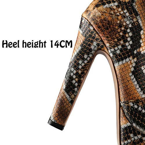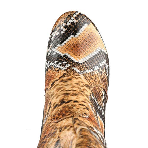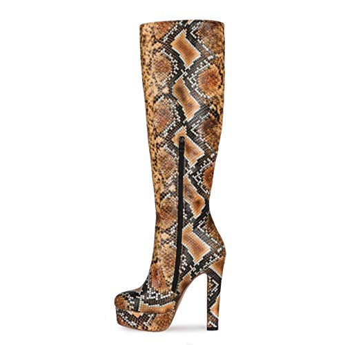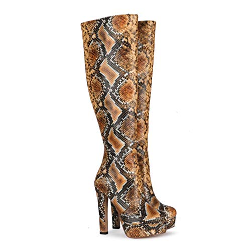 Botas Hasta Las Rodillas,Patrón De Serpiente Marrón Tacón Grueso Plataforma Impermeable Cremallera Lateral Cabeza…