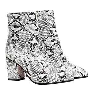Happyyami 1 par de Botines de Mujer Botines de Invierno Patrón de Piel de Serpiente Punta Puntiaguda Tacones Gruesos…