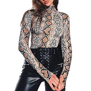 Mujeres Body Patrón De Serpientes De Una Pieza Mamelucos De Alto Cuello Basicas Mono De Manga Larga Mono Traje De…