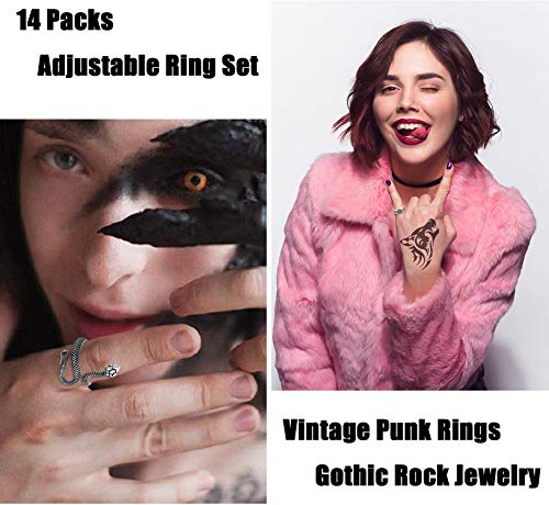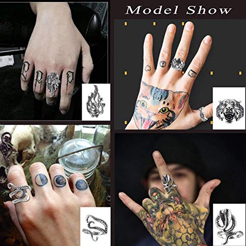 ★MATERIAL DURADERO★ El juego de anillos de dedo está hecho de aleación de alta calidad, baja alergia, no es fácil de oxidar ni oxidar, no volverá su dedo verde. Artesanía de fabricación de joyas de plata antigua, estilo vintage. Duros pero ligeramente ajustables, ajuste suavemente los anillos punk a su tamaño de ajuste, toque cómodo.