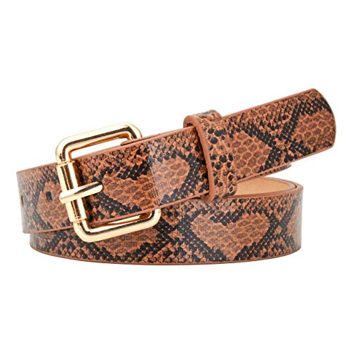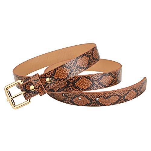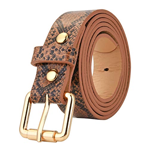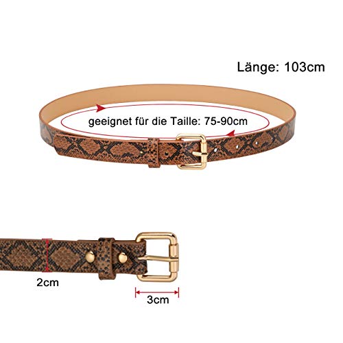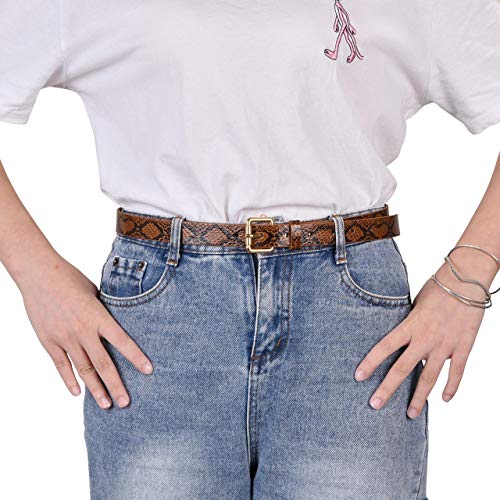 Cinturón estrecho – Ancho del cinturón: 2 cm, longitud de la hebilla: 3 cm, longitud total: 103 cm; patrón de serpiente hace que el cinturón sea elegante y sexy, es un bonito accesorio para vestido o vaqueros.