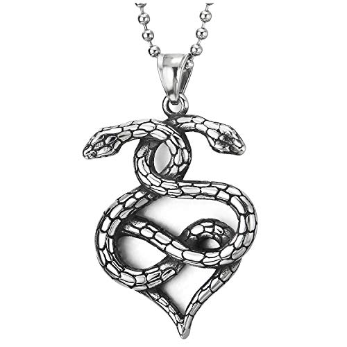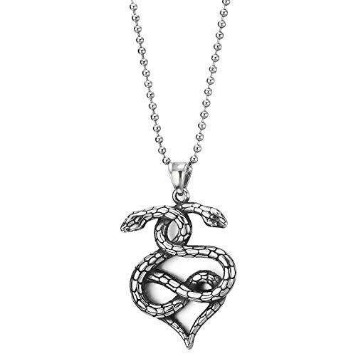 COOLSTEELANDBEYOND Hombre Mujer Acero Enroscarse Enroscado Cobra Serpiente Colgante, Collar con Colgante, Cadena 75CM