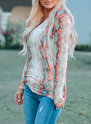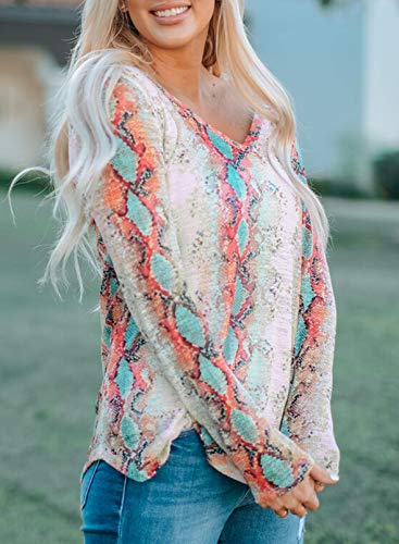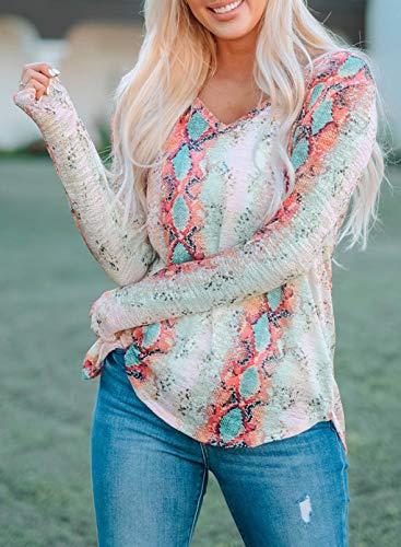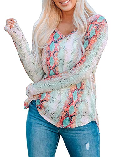 CORAFRITZ Sudadera de manga larga para mujer, ligera, con estampado de serpiente, cuello en V, suave
