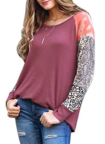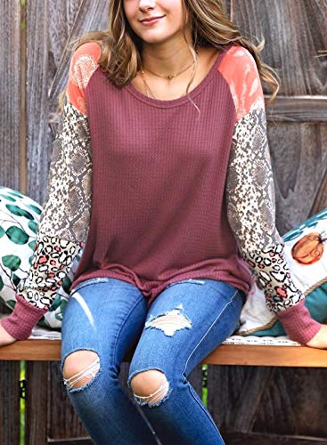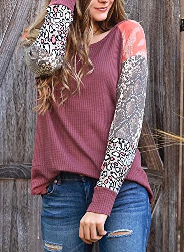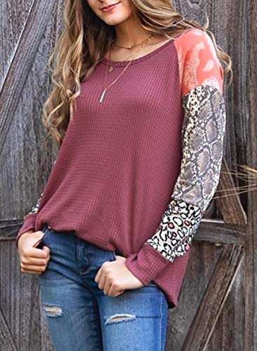CORAFRITZ Sudadera ligera con estampado de leopardo para mujer, con estampado de piel de serpiente, de retazos, manga…