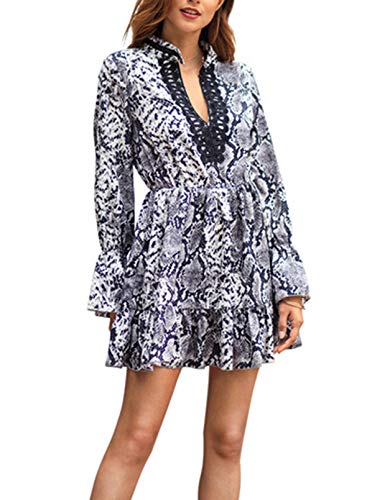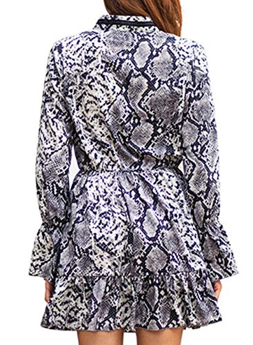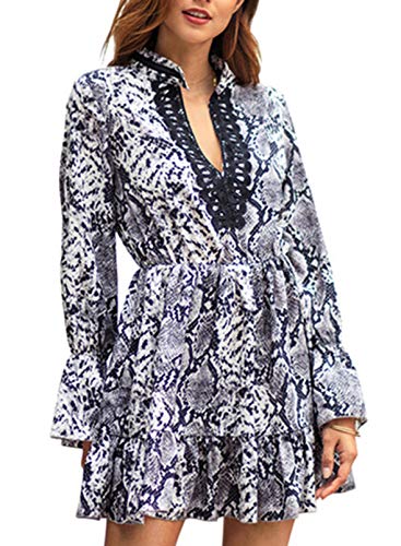 CORAFRITZ Vestido de mujer de moda con estampado de piel de serpiente, con cuello en V, manga larga acampanada…