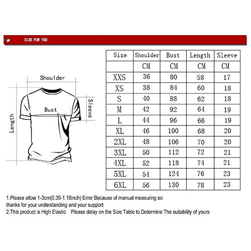 Aviso: La medición puede tener 1-3cm (0.39-1.18 pulgadas) errores inexactos, Consulte nuestra carta del tamaño de la foto del producto para encontrar el mejor ajuste 3D impreso camiseta.