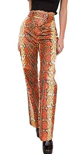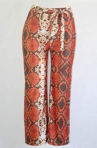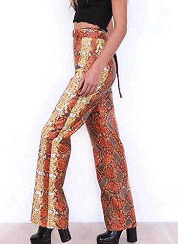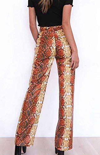 Elegantes Moda Pantalones Patrón Anchos Mujer Estilo Otoño Primavera Simple De Serpientes Estampadas Con Cinturón Con Cremallera Cintura Alta Slim Fit Largos Trousers Cómodo Pantalones Rectos Estilo