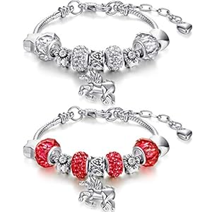2 Paquetess Pulsera de Cuentas Unicornio Pulseras de Dijes de Cristal Brazalete Pulsera Hecho a Mano con Caja de Regalo…