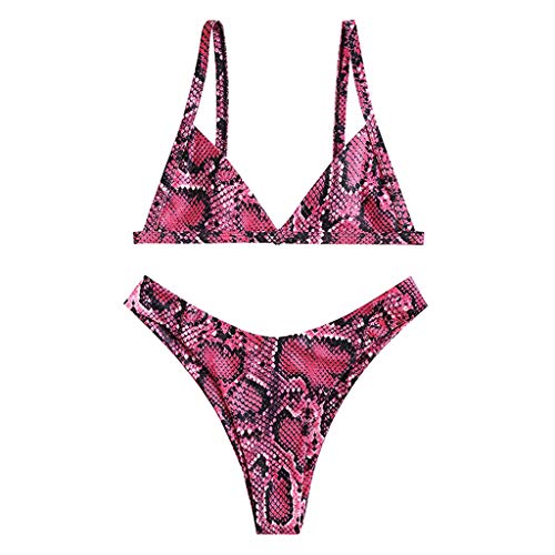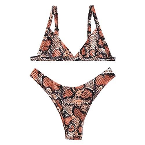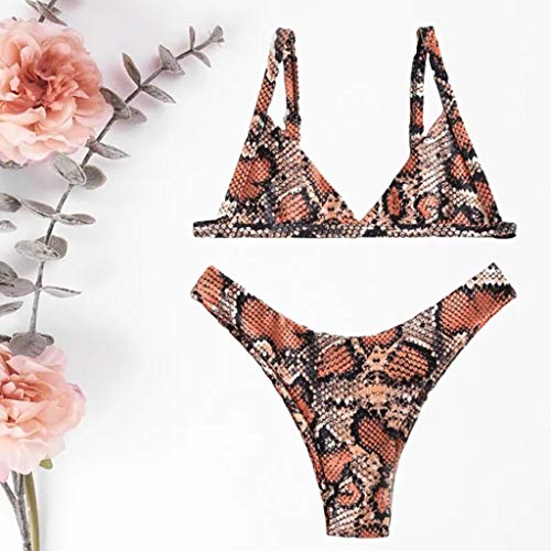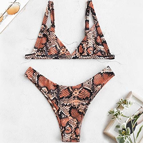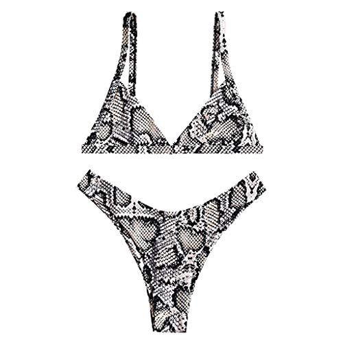 Faguo Mujeres Sexy 2Pcs Bikini Set Sujetador sin Espalda con Cuello en V Tanga de Corte Alto Traje de baño de Piel de…