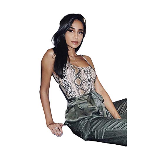 Body de spaghetti, cuello en v y cabestro, estampado de serpiente, elegante y especial.