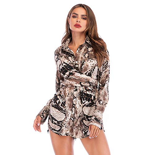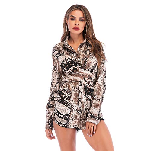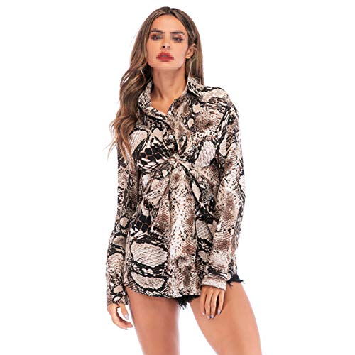 1 x Camisa con botones de mujer Blusa de manga larga con estampado de piel de serpiente Tops cálidos casuales