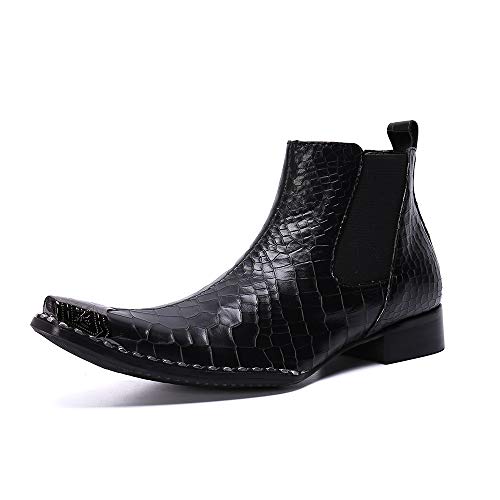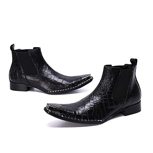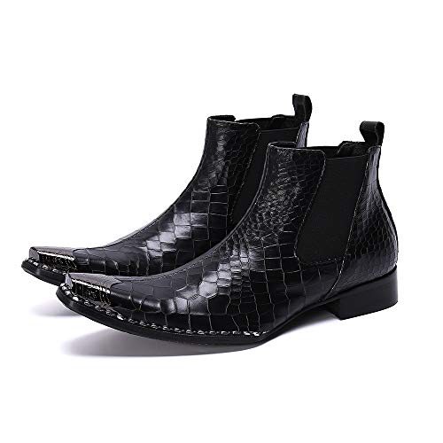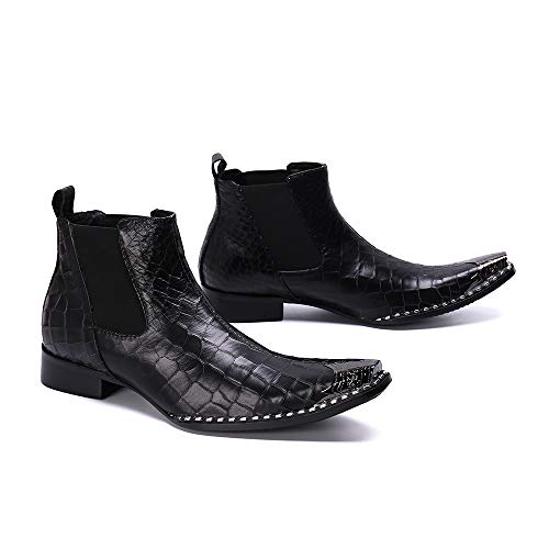 FIESSO Bota de Trabajo de Negocios con Punta Puntiaguda de Metal for Hombres Bota de Tobillo Cuero Genuino de Primera…