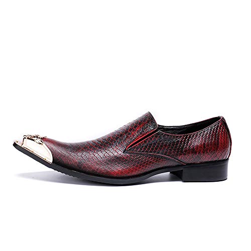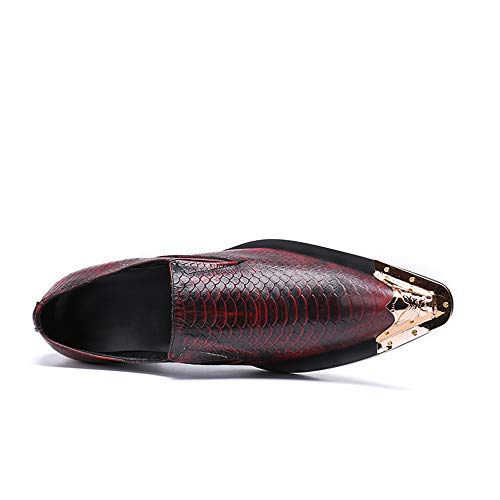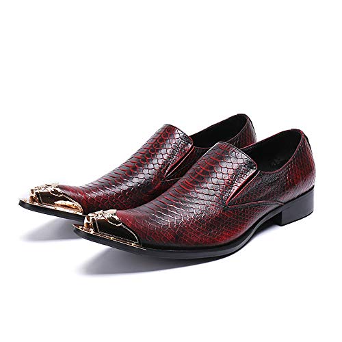 FIESSO Oxford para Hombre Zapatos Formales Slip On Style Cuero Genuino Vintage Piel de Serpiente Textura Metal Toe…