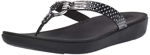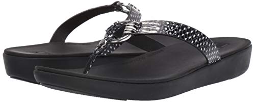 Haga clic aquí para ver la guía de tallas FitFlop para mujer. Haga clic aquí para obtener más información sobre la plantilla FitFlop ergonómica y biomecánica. ¡Hurra por la sandalia Hoopla y su comodidad duradera y su estilo! Tirantes de cuero estampados de serpiente en relieve. Diseño sin cordones. Parte superior forrada de piel. Plantilla totalmente acolchada con soporte de arco integrado. Cuenta con tecnología DUOCOMFFTM; diseñada con dos capas anatómicamente contorneadas de comodidad acolchada y una suela ligera y antideslizante con vainas de goma delantera y trasera. Recibió el Sello de Aceptación de APMA, para el calzado que se encuentra para promover una buena salud de los pies. Importado. Medidas: Altura del tacón: 1 1/4 pulgadas. Peso: 5 onzas. Altura de la plataforma: 1⁄2 pulgadas. Las medidas del producto se tomaron utilizando el tamaño 8, ancho M (B). Ten en cuenta que las medidas pueden variar según la talla. El peso del calzado se basa en un solo artículo, no en un par.