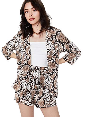 Floerns – Conjunto de 2 Piezas para Mujer, Manga 3/4, Estampado de Piel de Serpiente y Pantalones Cortos