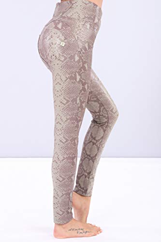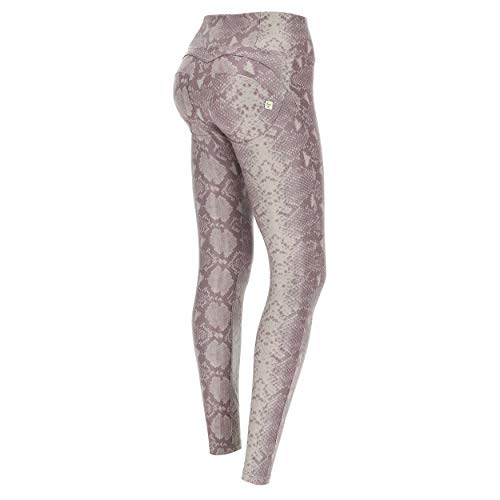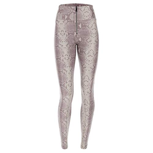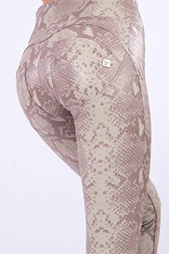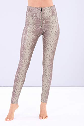 Pantalón WR.UP de piel vegana con estampado reptil burdeos, de talle alto y largo regular. Cierre con cremallera delantera. Corte pitillo. El efecto moldeante de la tecnología WR.UP de Freddy se combina con las características de la cápsula Special Look ”Reptile” que reinterpreta en clave más de tendencia la clásica textura reptil con colores inusuales para un look nocturno.