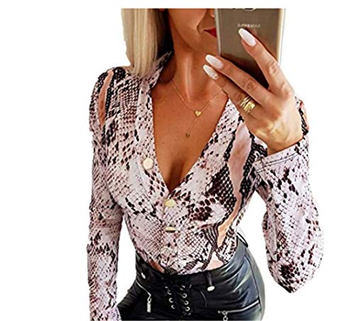 Características: cuello en V, botón hacia abajo, manga larga, diseño elegante (estampado de serpiente, estampado de leopardo), corte delgado, estilo moderno.