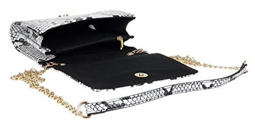 bolso de embrague de cuero de imitación elegante con compartimento principal design.One piel de serpiente completamente lined.Comes con un chain.A hombro extraíble detalle perfecto para un traje de noche.W 18, H 14, D 7 cm (W 7, H 6, D 3 inches)