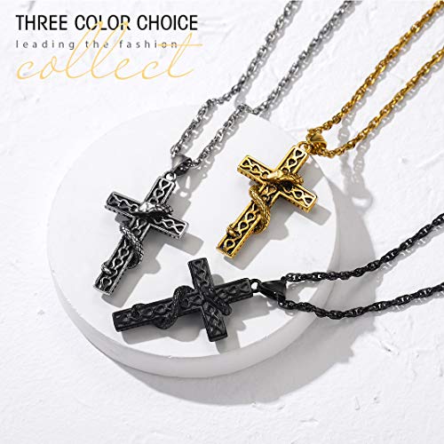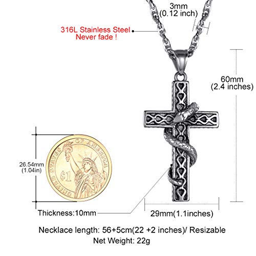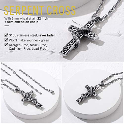 ✅ ✞ Cruz con Serpiente Enroscada✞ ✅ la Cruz es el Encuentro del Amor de Dios y su Justicia. Colgante Muy a Diario para Mujeres y Hombres