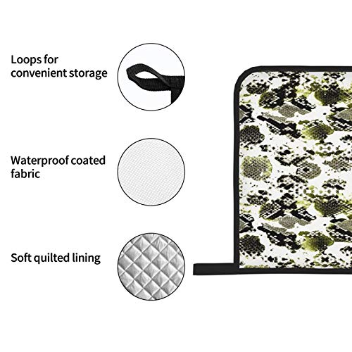 🔥 MANEJO SEGURO ANTIDESLIZANTE: Mejorado con un diseño antideslizante impreso, nuestros guantes para horno permiten un agarre más firme al manipular utensilios de cocina. Los guantes de cocina y los agarraderas para ollas vienen con presillas para colgar para que puedas colgarlos cuando no los uses.