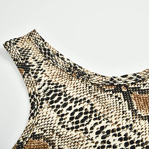 ♥ Impresión digital de piel de serpiente bohemia, cintura imperio elástica con cintura alta, estilo camiseta sin mangas, una pieza, es ideal para chaquetas o solo.