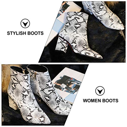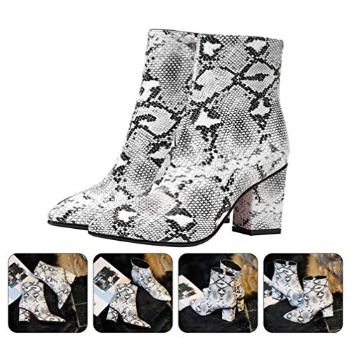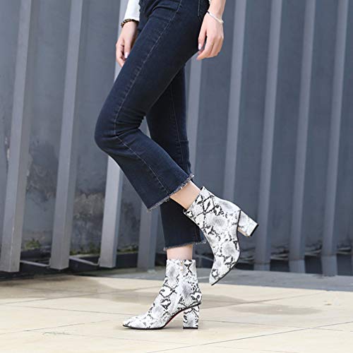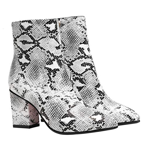 Happyyami 1 par de Botines de Mujer Botines de Invierno Patrón de Piel de Serpiente Punta Puntiaguda Tacones Gruesos…