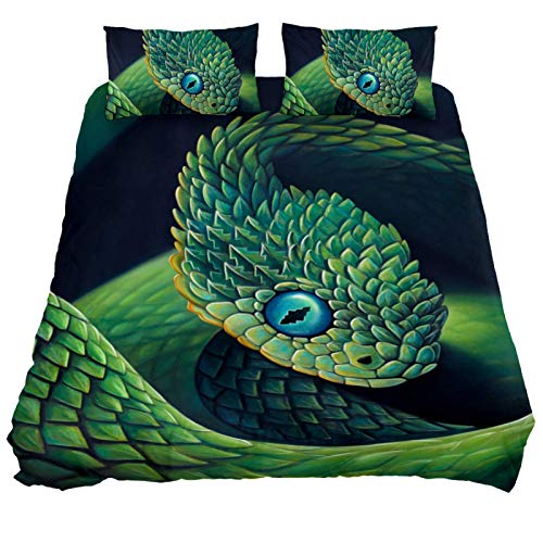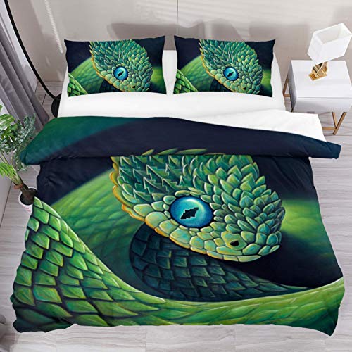 HARXISE Juego de Cama de Microfibra Lavada 3 Piezas, Hermosa Serpiente Verde Negra, Funda nórdica Suave y Transpirable…
