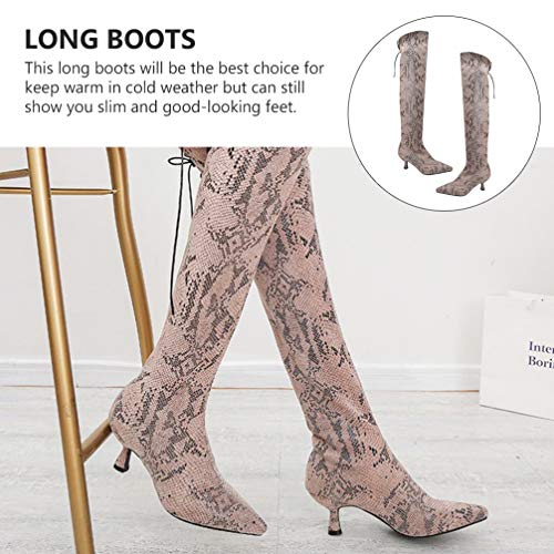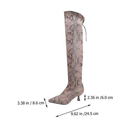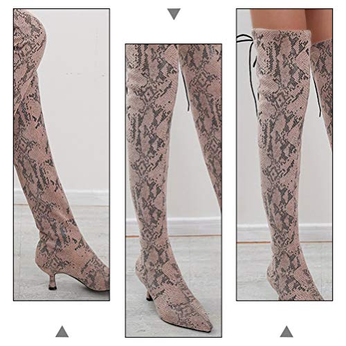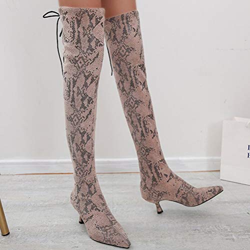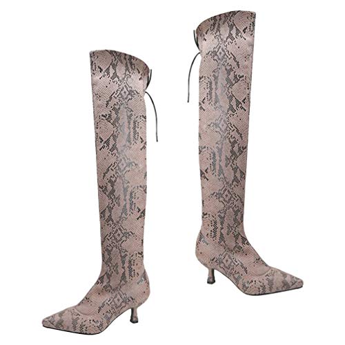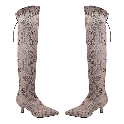 1 par x Botas de tacón alto por encima de la rodilla para mujer Piel de serpiente con punta pionada Otoño Invierno Botas de calcetines finos y gruesos Botas altas del infierno Botas de caballero para mujeres Damas br />