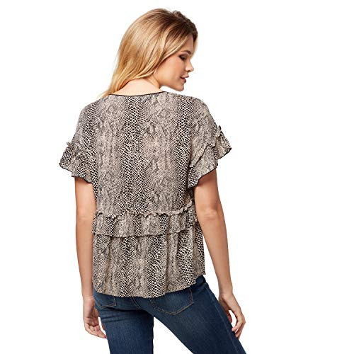 La blusa de manga corta de Jessica Simpson Ashby Ruffle detallada tiene un bonito escote en V, dobladillo curvado y un bonito cuerpo holgado. Va muy bien con todos los pantalones, desde pantalones cortos hasta pantalones vaqueros y pantalones cortos hasta faldas perfectas para llevar en la oficina, asistir a una clase o hora feliz con amigos. Disponible en varios colores. Jessica Simpson es una marca icónica estadounidense, que ofrece un producto de moda con un precio atractivo. La marca abarca ropa vaquera, ropa deportiva, activa, tween y niños pequeños. Su cliente no tiene miedo de hacer una declaración de moda, y tiene la capacidad de ser sofisticado pero sin preocupaciones. Tiene un toque femenino y bohemio. Le encanta el color, los patrones atrevidos y el brillo. Su vestuario gira alrededor de denim en capas con las piezas imprescindibles.