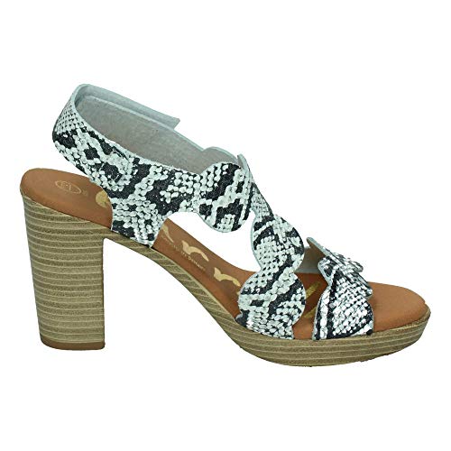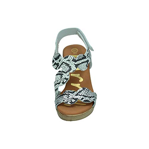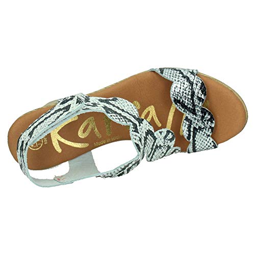 Sandalias para mujer de piel con plantilla de gel, fabricadas en España por la marca Karralli, en color plomo imitación de piel de serpiente, cómodas, frescas, suaves y confortables. Calidad Karralli.
