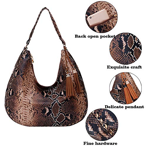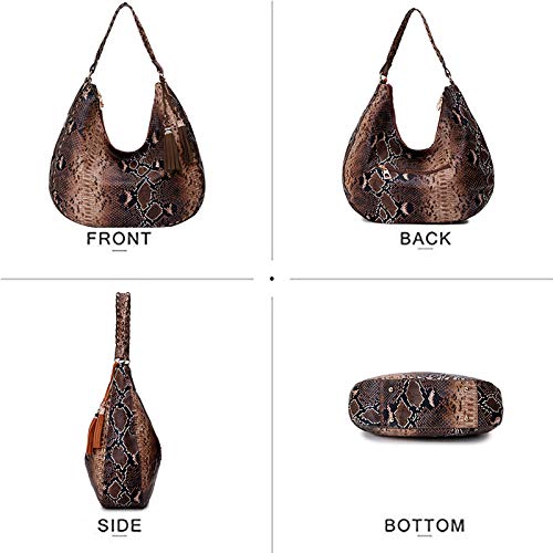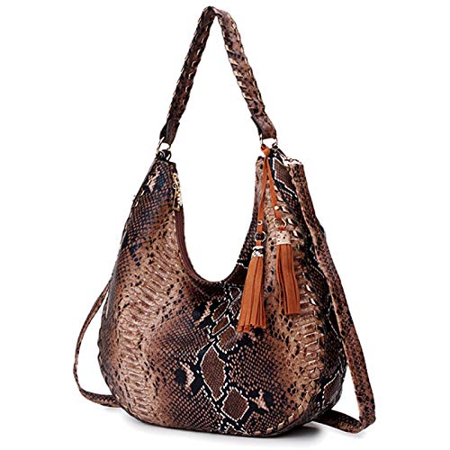 Hecho de piel con estampado de piel de serpiente, este bolso es moderno y elegante, nunca pasa de moda.