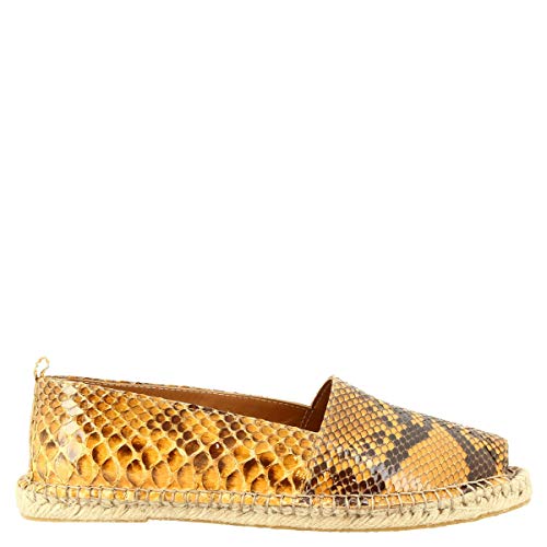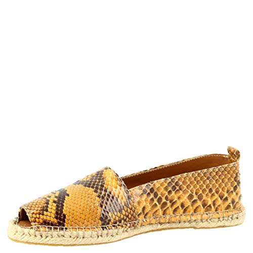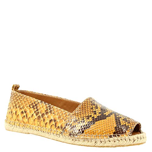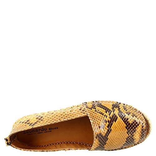 Leonardo Shoes Alpargatas peep toe hechas a mano para mujer en piel de pitón amarilla