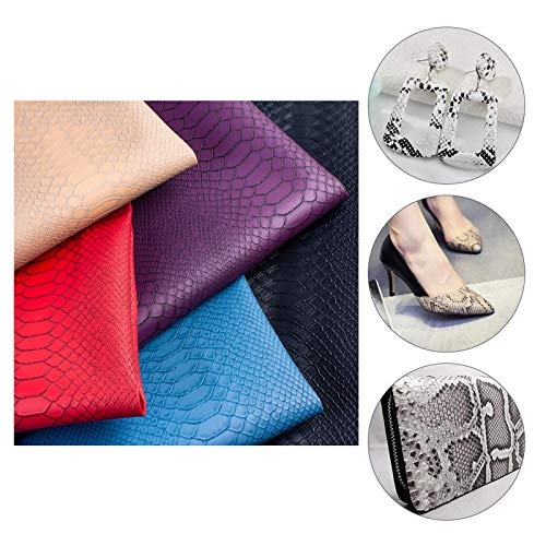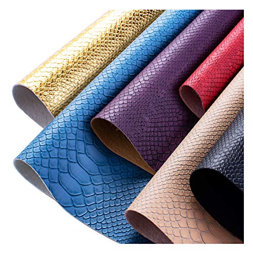 Colores vibrantes: hay muchos colores diferentes de láminas de cuero de pvc de color sólido con estampado de serpiente precortadas como se muestra en la imagen, lo suficiente para sus diferentes usos, la parte frontal del cuero es de textura rugosa, no suave, se envía plano para su conveniencia