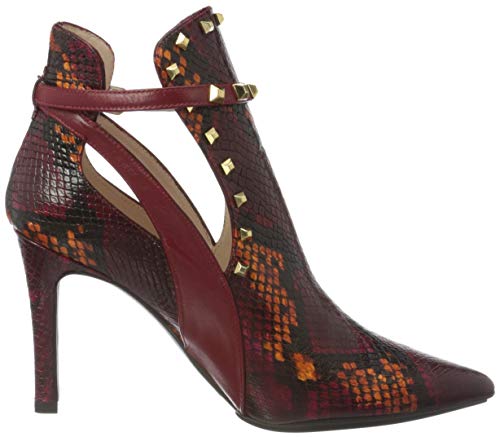 Botín Rubenstpsr de LODI. Un botín con tacón fino de 9.5 cm de altura forrado en piel con estampado animal. Botín confeccionado en piel con estampado de serpiente en tonos cálidos. Destacan tiras en piel de color rojo con tachas metalizadas en tonos oro. Un botín ideal para comobinar con tus looks más especiales. Interior forrado en piel. Incluye planta new gel para mayor comodidad en todas tus pisadas. Fabricado en España.