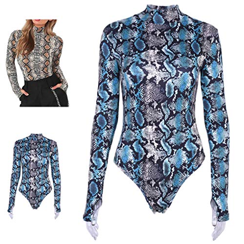 Luckiests Las Mujeres de Piel de Señora impresión del Mono Serpiente de impresión Body Señora de Manga Larga Mono High…