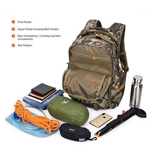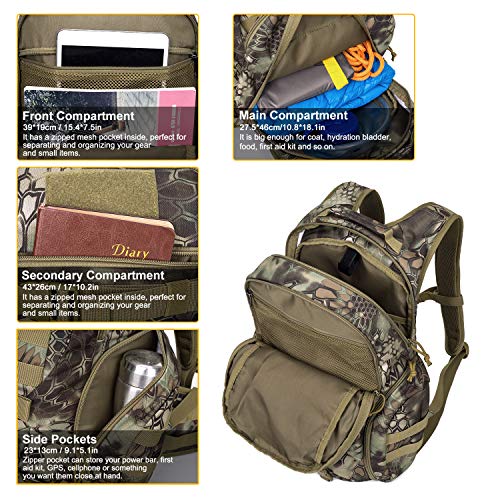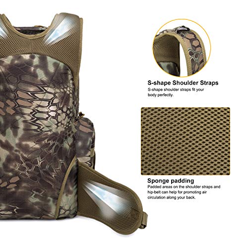 ▶ Fácil de usar: el enlace Molle se encuentra en la parte delantera de la mochila y en el costado del cinturón, y puede colocar los accesorios que necesita (por ejemplo, una bolsa MOLLE). Las correas de hombro acolchadas de malla reducen la presión del hombro y se ajustan a hombres y mujeres de diferentes tamaños. Correas ajustables en el pecho y correas para sostener las caderas.