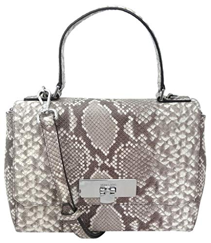 Michael Kors Callie Cross Body Bolso de hombro Cuero Marrón Arena Oscuro Piel de Serpiente en relieve Bolso